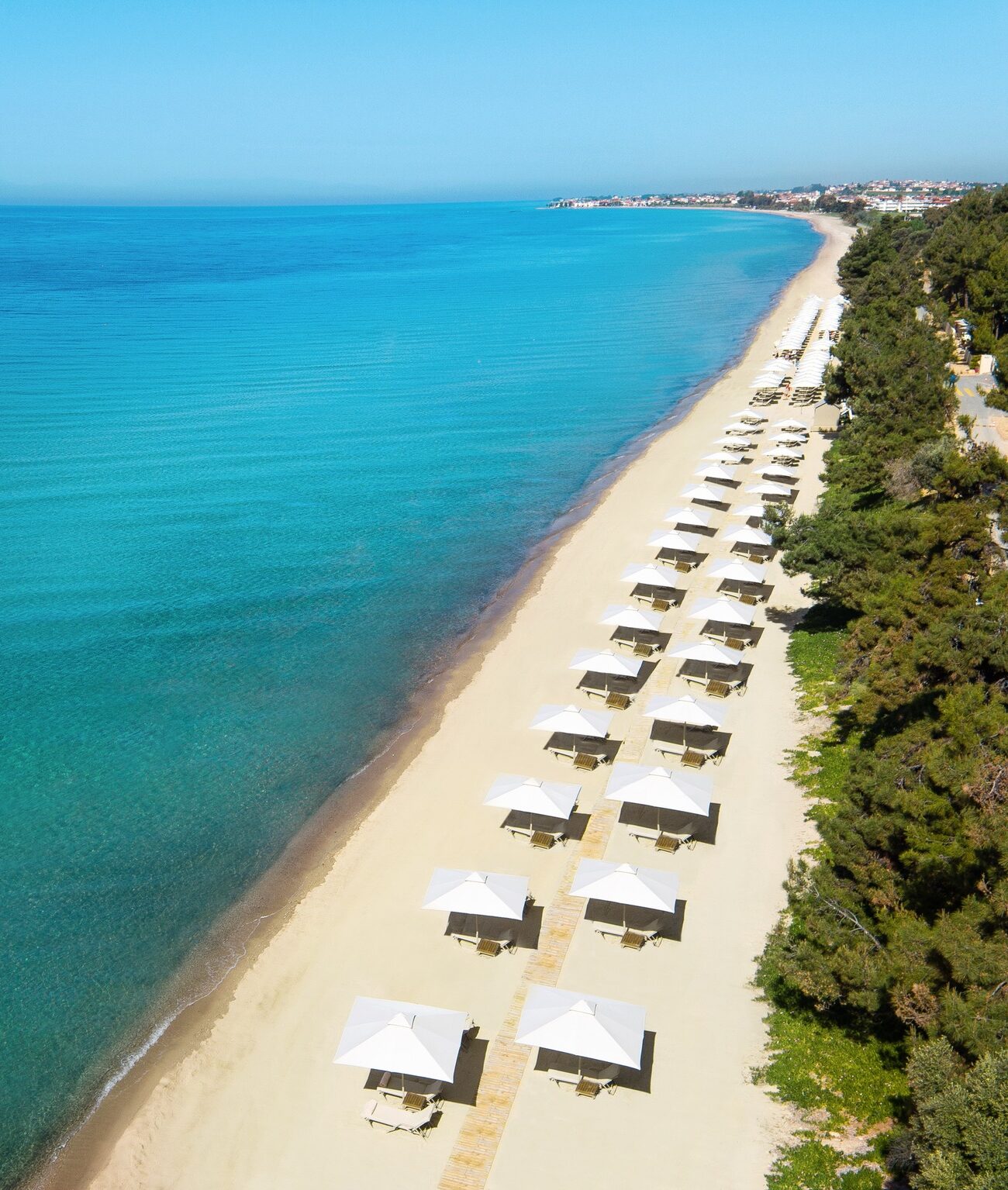 Καινούργιο πολυτελές resort (άνοιξε πέρυσι) πάνω στην εξωτική παραλία του Αγίου Ιωάννη κοντά στη Νικήτη μέσα σε τεράστιους καταπράσινους κήπους που φτάνουν μέχρι την απέραντη αμμώδη παραλία και φαντασμαγορική οβάλ πισίνα. Τα μαρμάρινα μπάνια στα δωμάτια, είναι μια απολαυστική έκφραση της ποιότητας των υλικών που έχουν χρησιμοποιηθεί.