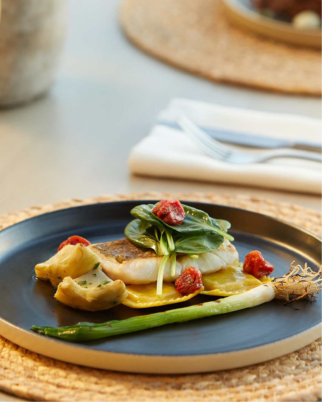 Ο Executive Chef Διονύσης Πλιάτσικας, αντλεί στοιχεία από τη γαστρονομική παράδοση των resorts του ομίλου που δηλώνουν παρουσία στην Κρήτη, τη Μήλο, την Κέρκυρα, τη Ζάκυνθο, την Πορτογαλία και τη Χαλκιδική και σχεδιάζει μενού που ανταποκρίνονται στο κοσμοπολίτικo αλλά και βαθιά ελληνικό προφίλ του χώρου.