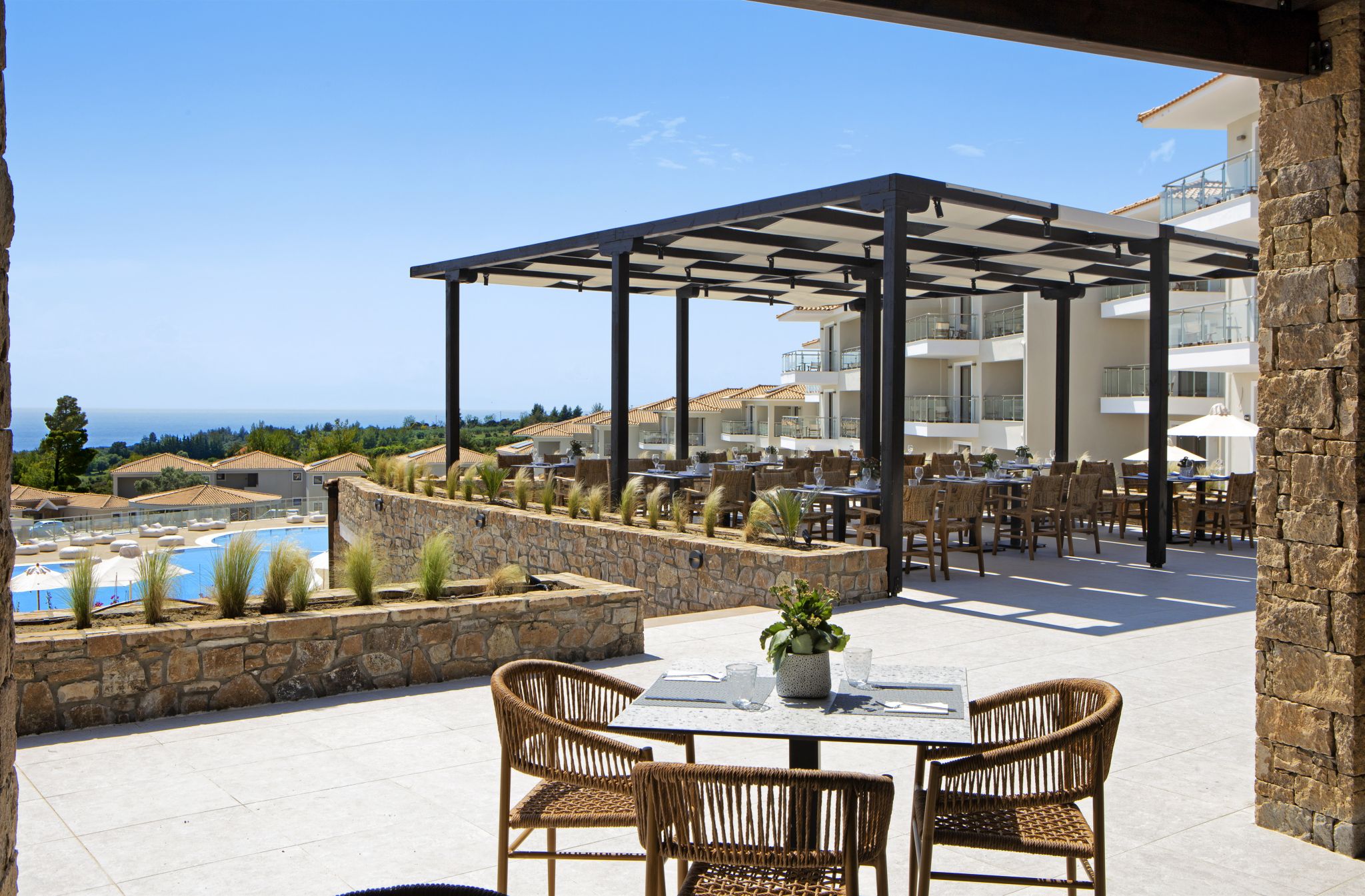 Ρομαντικό και εκλεπτυσμένο το υπαίθριο εστιατόριο Atelier, στην κορυφή ενός καταπράσινου λόφου με θέα στο Άγιο Όρος με ελληνική δημιουργική κουζίνα ενώ στο The Champagne Bar προσφέρονται signature cocktails με εκχυλίσματα φρούτων και βοτάνων. Executive chef ο Πάνος Παπαδόπουλος.